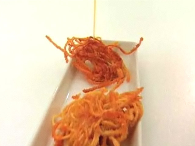 Рецепт итальянской кухни. Сиракузские жаренные макароны.На 2 порции:спагетти — 80 гр;яйцо — 1 штука;оливковое масло, соль, панировочные сухари, апельсиновый сок, тимьяновый мед.